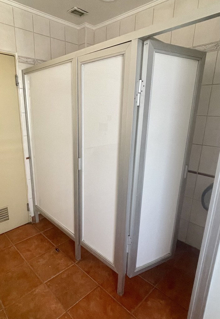 The stall to the left, also known as the corner of crappy confinement