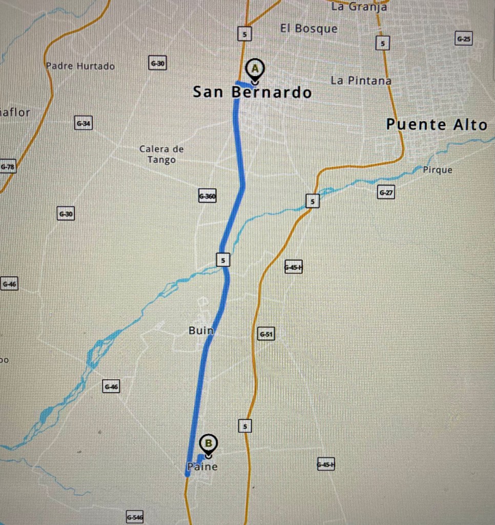 Map of our drive from (A) our apartment to (B) the Paine chapel